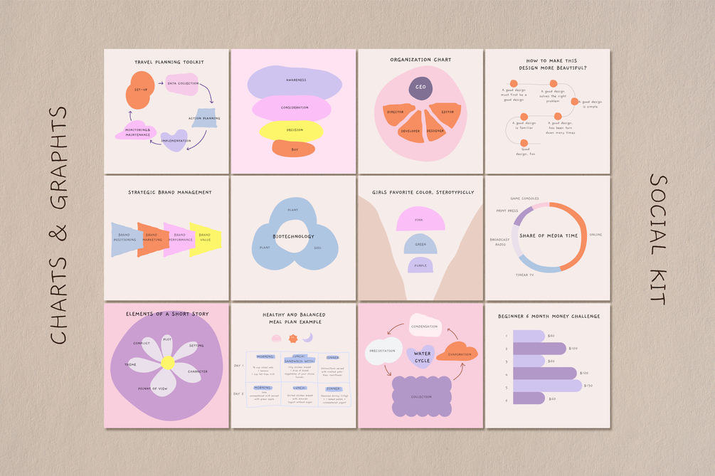 Let's make charts attractive with colorful hand-illustration collection.It's not just charts and graphs we also include podcasts and Q&A layout packages to give variety and enhance your profile.